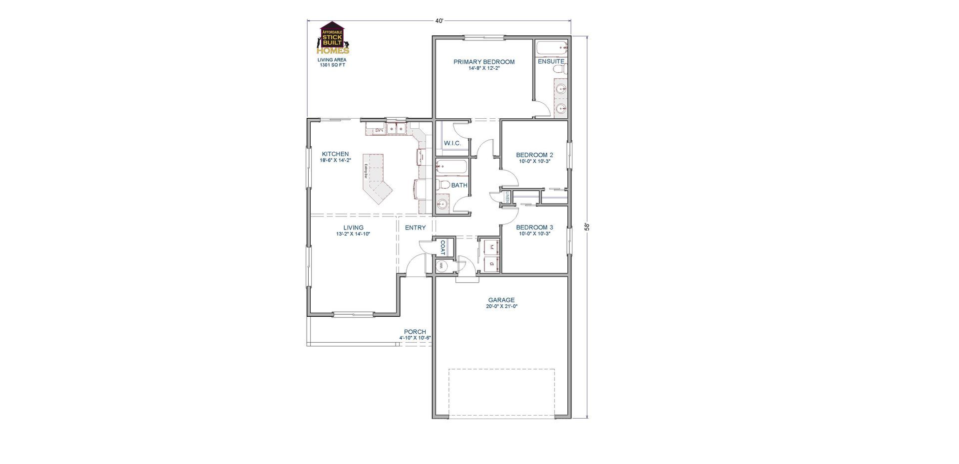 The 1301 Plan proves that a midsize home can be more than it appears. Vaulted ceilings span the kitchen and living room. The master suite is expansive, features A walk in closets and a dual vanity bath.
